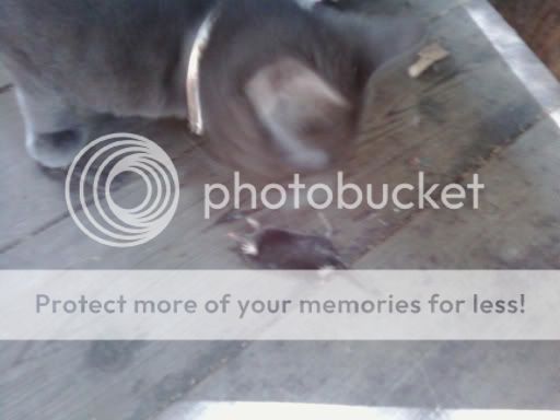 Yep, you're seeing it right, that is a Mole. Janey was very proud of herself. She came right up to me and set it on the deck next to me. When she brought it, it wasn't quite dead yet, so she lifted it by the tail and slammed it into the door. It was dead after that. I then took a few breaths, built up my courage, and then took a piece of plastic and threw the mole. Janey freaked, and ran after it, playing with it. I let her do this for a while, but then it was time to go inside. I moved to grab her, and she avoided me. Finally I lifted her up and put her inside, and then when I put her down, she bolted back for it. Don't worry, I finally got her to stay inside, but we'll see tomorrow if she doesn't go looking for it again, haha.